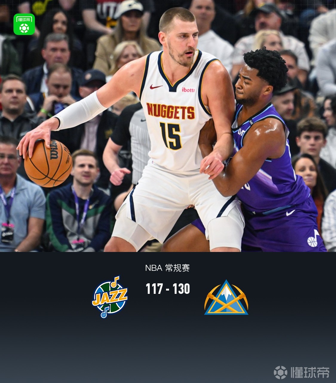 北京时间4月2日NBA 常规赛,犹他爵士对阵丹佛掘金。半场爵士54-68掘金,最终爵士117-130掘金。